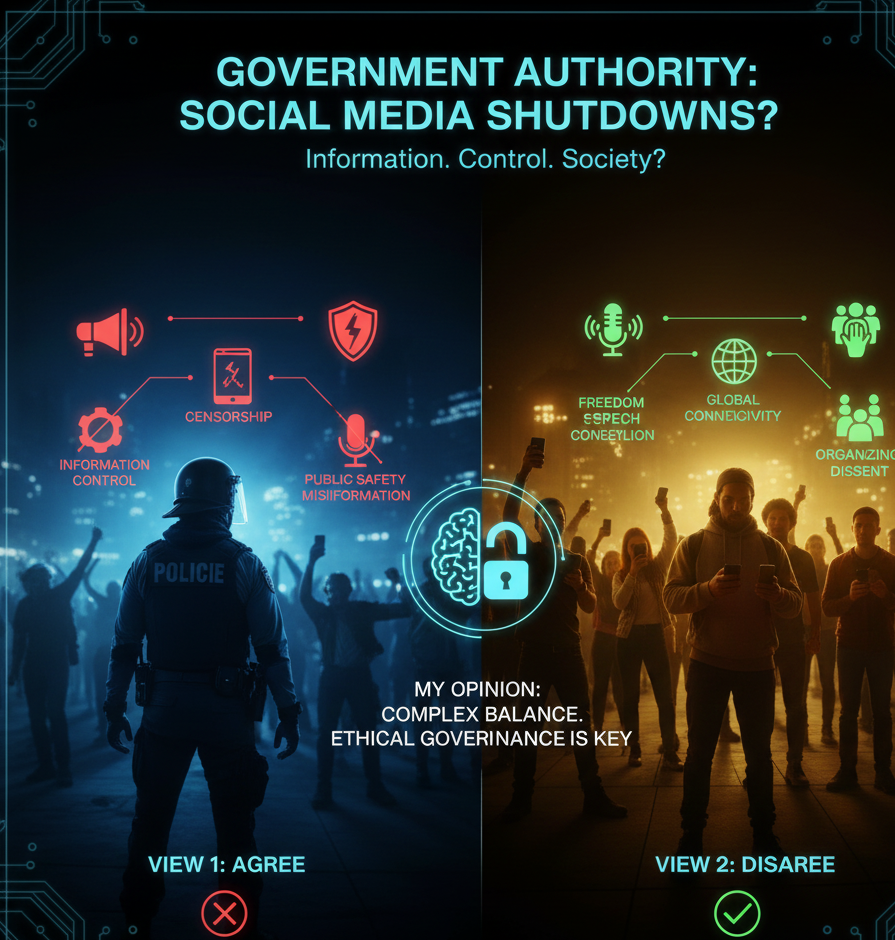 Governments should have the authority to temporarily shut down social media platforms during times of civil unrest to prevent the spread of misinformation. To what extent do you agree or disagree?