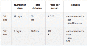 Complete the table below. Write ONE WORD OR A NUMBER.