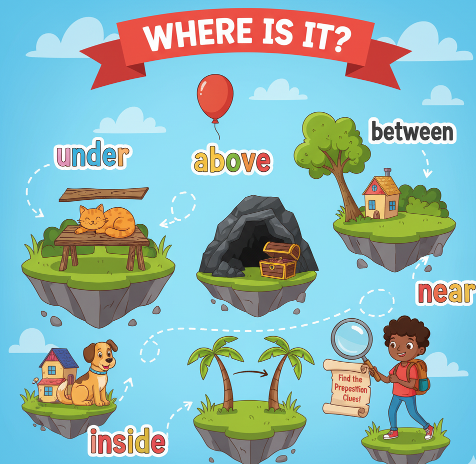 | Place | in, on, under, near | in the box, on the table |