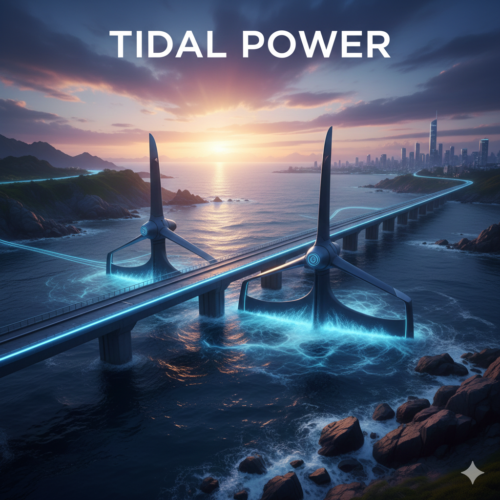 A Operating on the same principle as wind turbines, the power in sea turbines comes from tidal currents which turn blades similar to ships’ propellers, but, unlike wind, the tides are predictable and the power input is constant. The technology raises the prospect of Britain becoming self-sufficient in renewable energy and drastically reducing its carbon dioxide emissions. If tide, wind and wave power are all developed, Britain would be able to close gas, coal and nuclear power plants and export renewable power to other parts of Europe. Unlike wind power, which Britain originally developed and then abandoned for 20 years allowing the Dutch to make it a major industry, undersea turbines could become a big export earner to island nations such as Japan and New Zealand.